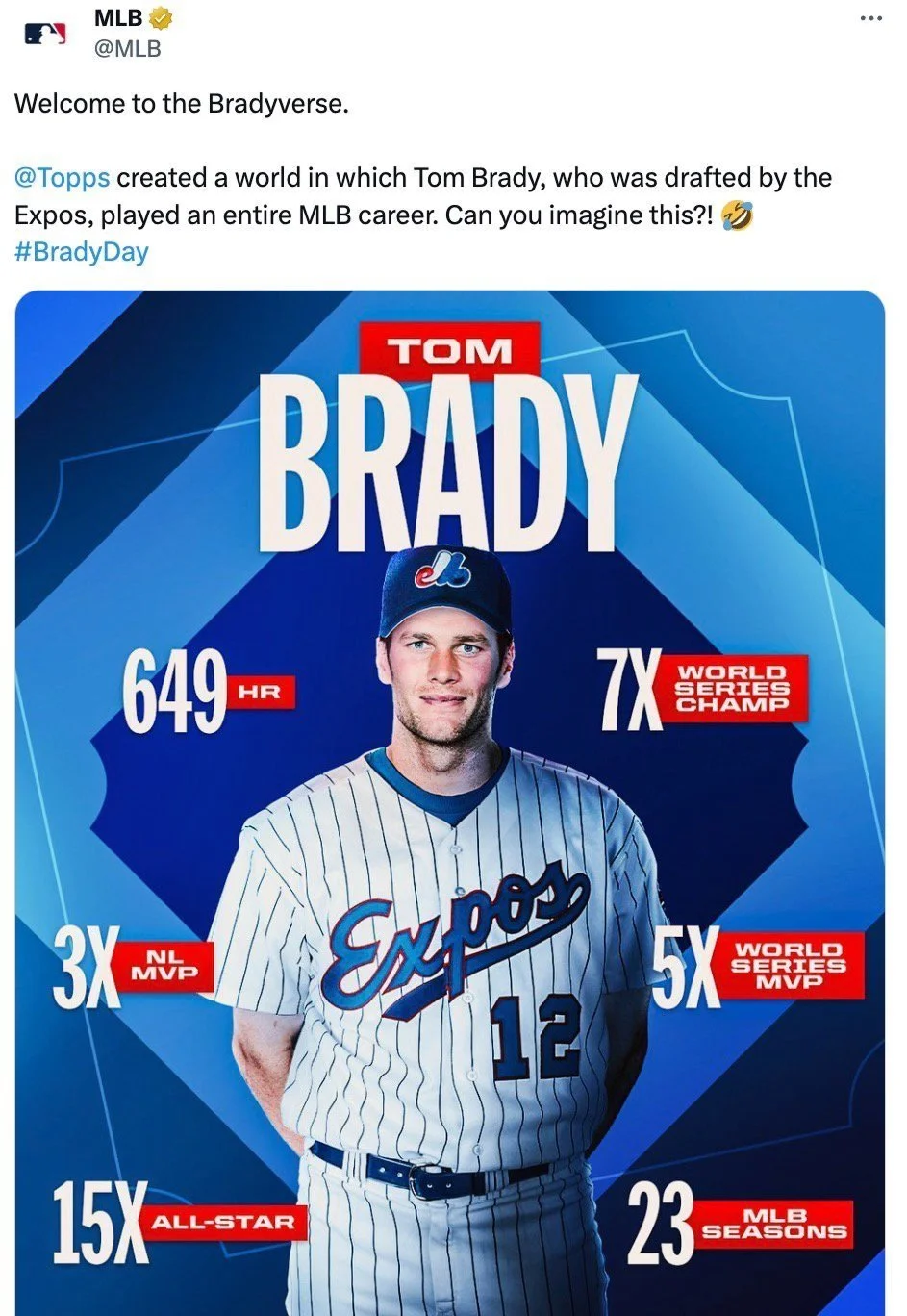 What if the GOAT of the NFL, chose the MLB? It almost happened. The Montréal Expos drafted Tom Brady out of high school. He instead chose college and football, and the rest is history. But what if it wasn’t? What if he stuck with the Expos? It’s the type of thought that could go viral on a Tuesday morning. Especially if that Tuesday was 12/12. Now officially known as “Brady Day.” Guess that’s one way to get millions upon millions of eyeballs for a brand with something as trivial as a baseball card.